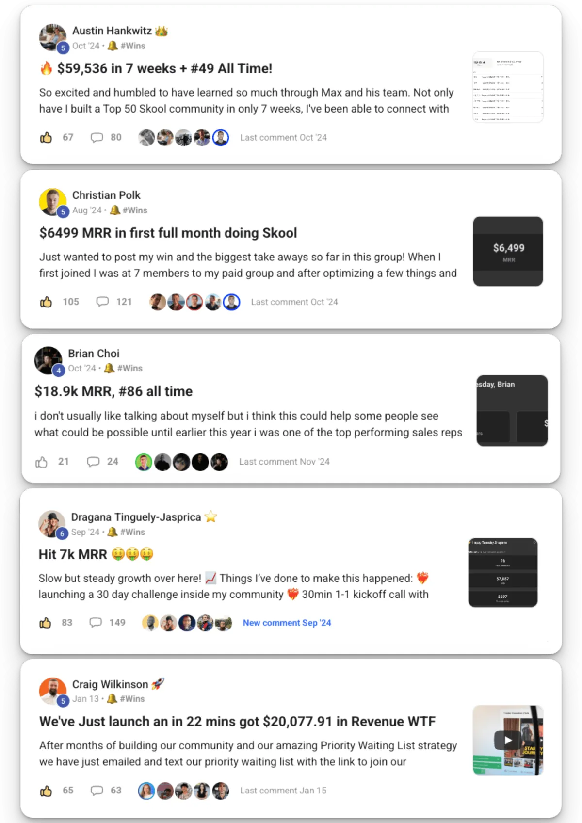 “I’m thrilled to announce that in just 60 days, I’ve smashed through the $11K MRR mark! Here’s the breakdown: $9K from Skool…”